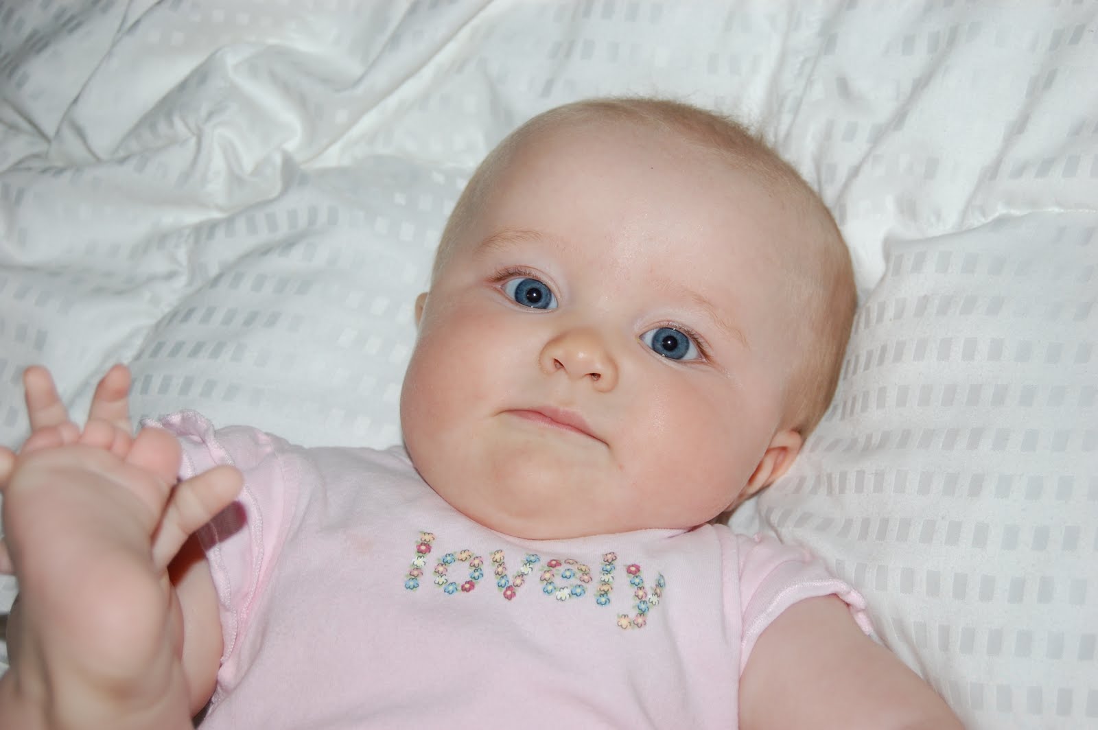 Today was Natalie's blessing. I (Karen) got to dress Natalie up for the first time. Before the blessing, I usually just take my babies to church in whatever sleeper they are wearing for the sake of convenience and less laundry. However, on blessing day, I love getting them in their white dresses, tights, and cute shoes for the first time in their lives. It's like a rite of passage almost as much as the blessing. (Notice Julia behind me taking the picture by remote. It was the only way we could get her to appear in the photo)
